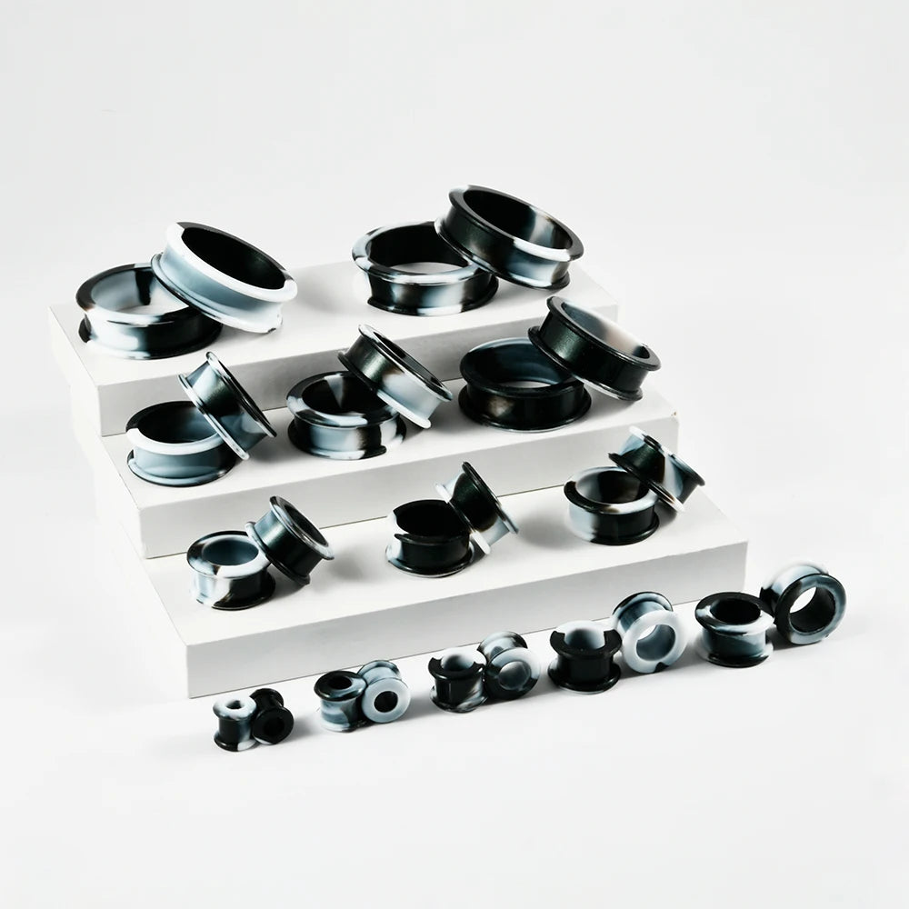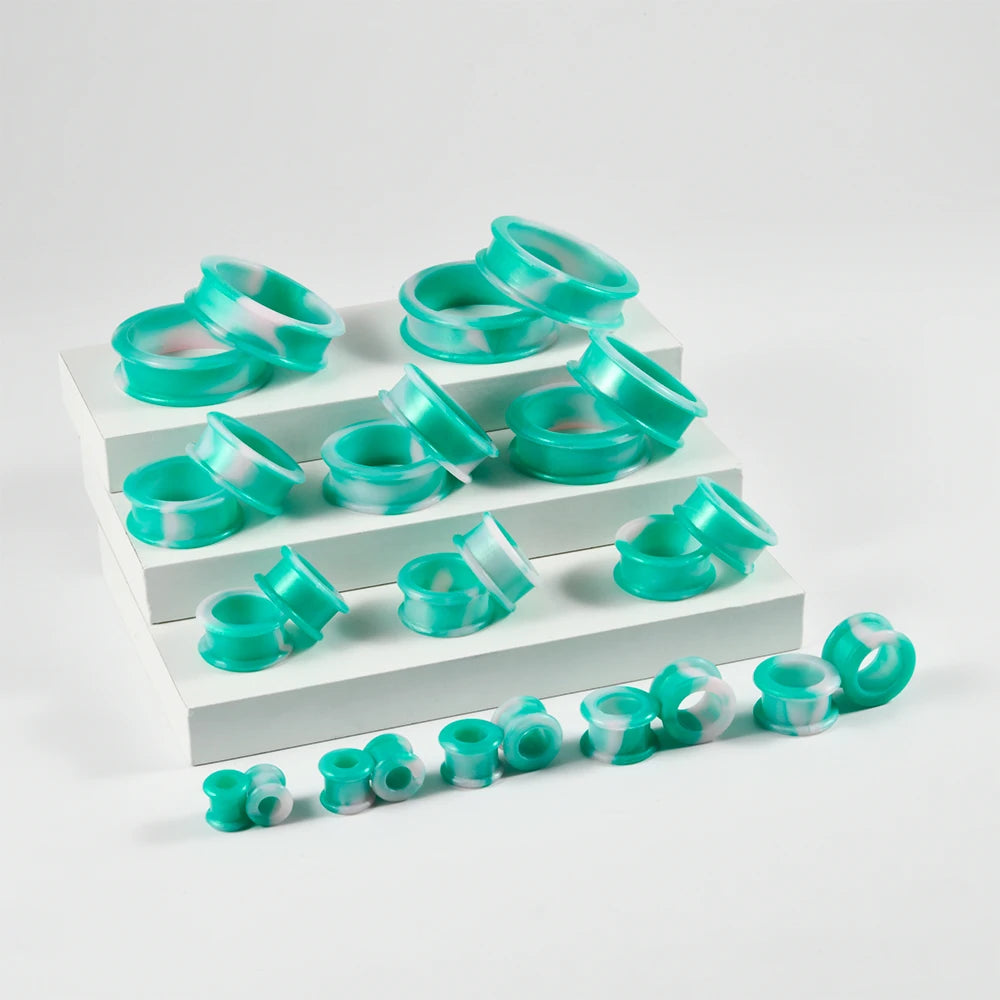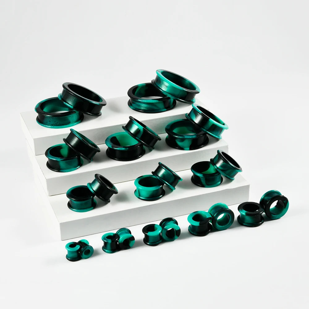 1Pair Uneven Colored Marble Color Thick Silicone Ear Tunnel Earrings Expander Double Flared Gauges Plug Piercing 8mm-38mm