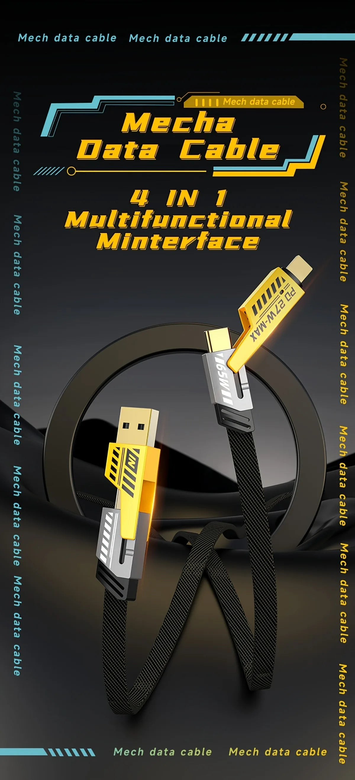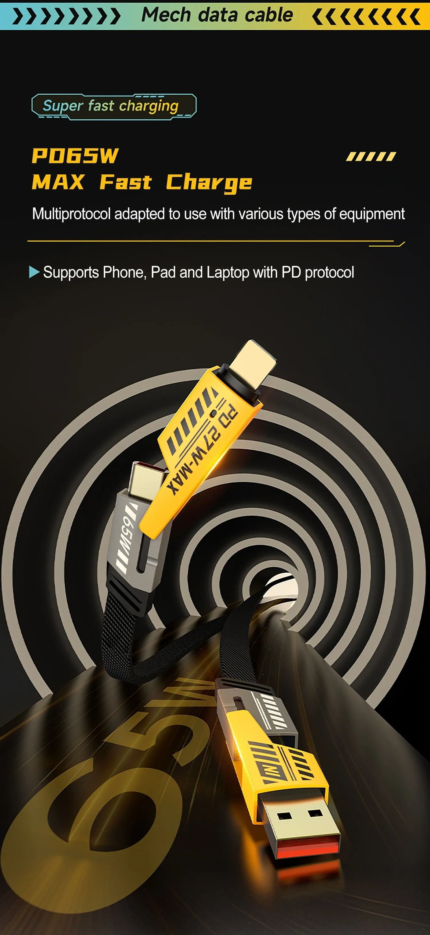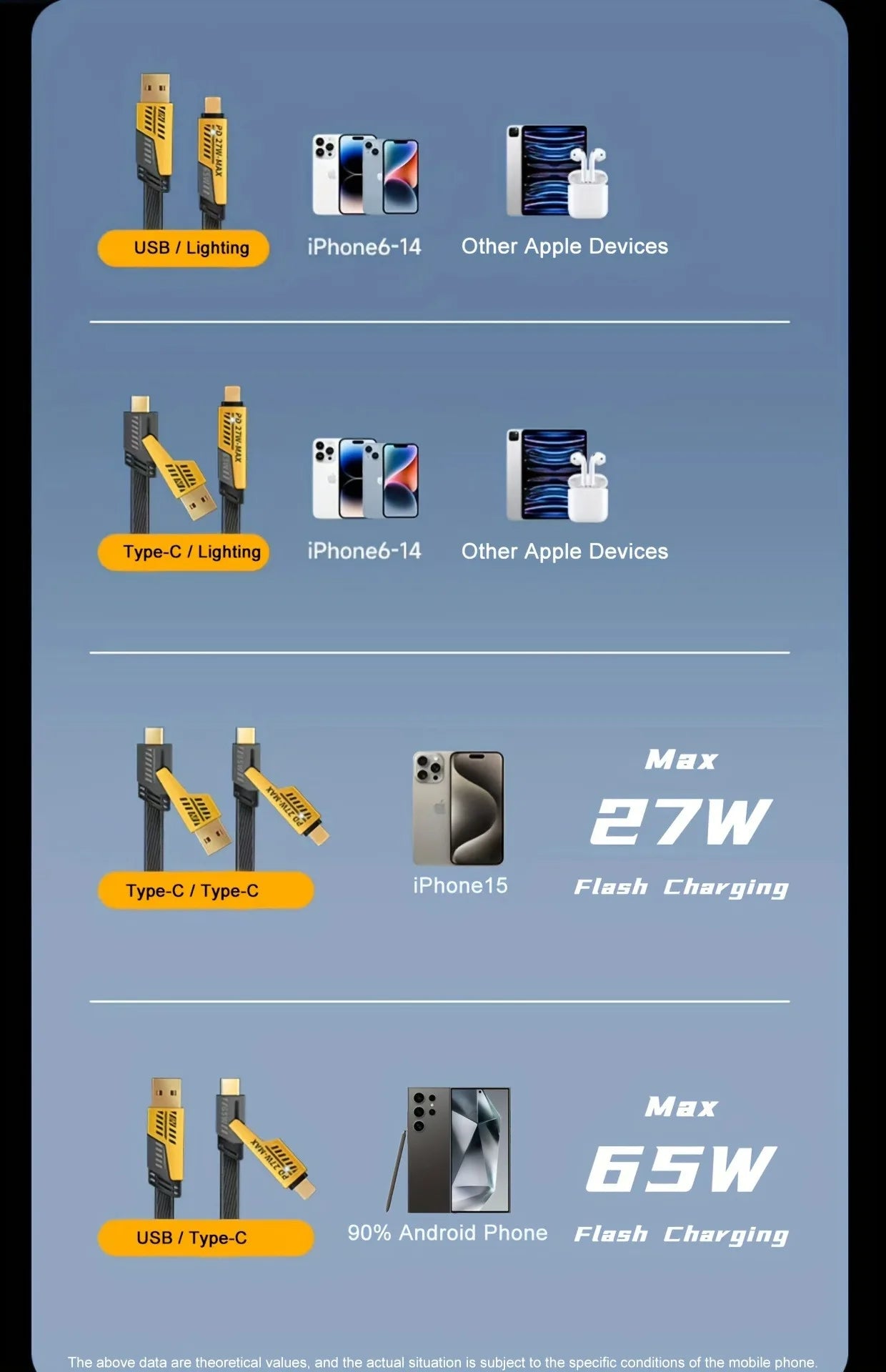 4 In 1 PD 65W USB Type C Data Cable Fast Charging For iPhone 16 15 14 13 12 Samsung Xiaomi Redmi Huawei Wire Cable Fast Charger
