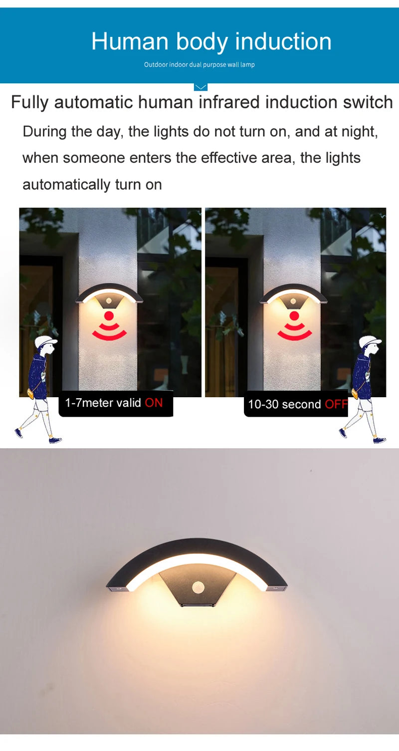 Intelligent Induction Wall Lamp Waterproof Porch Wall Light Outdoor PIR Motion Sensor Lamp Landscape Balcony Garden Corridor