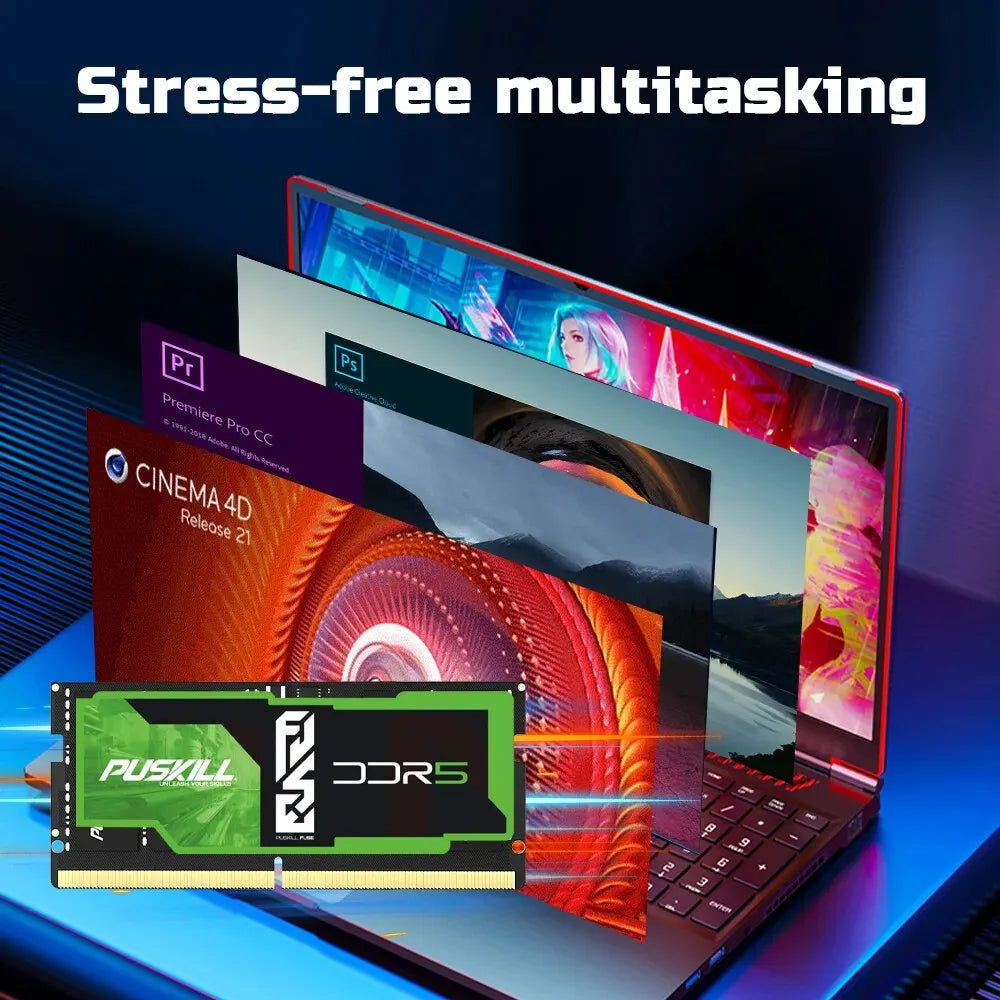 PUSKILL Memoria Ram DDR5 16GB 8GB 32GB 1.1V 262-Pin PC5 Notebook 4800MHz 5200MHz 5600MHz for Laptop SO-DIMM Memory