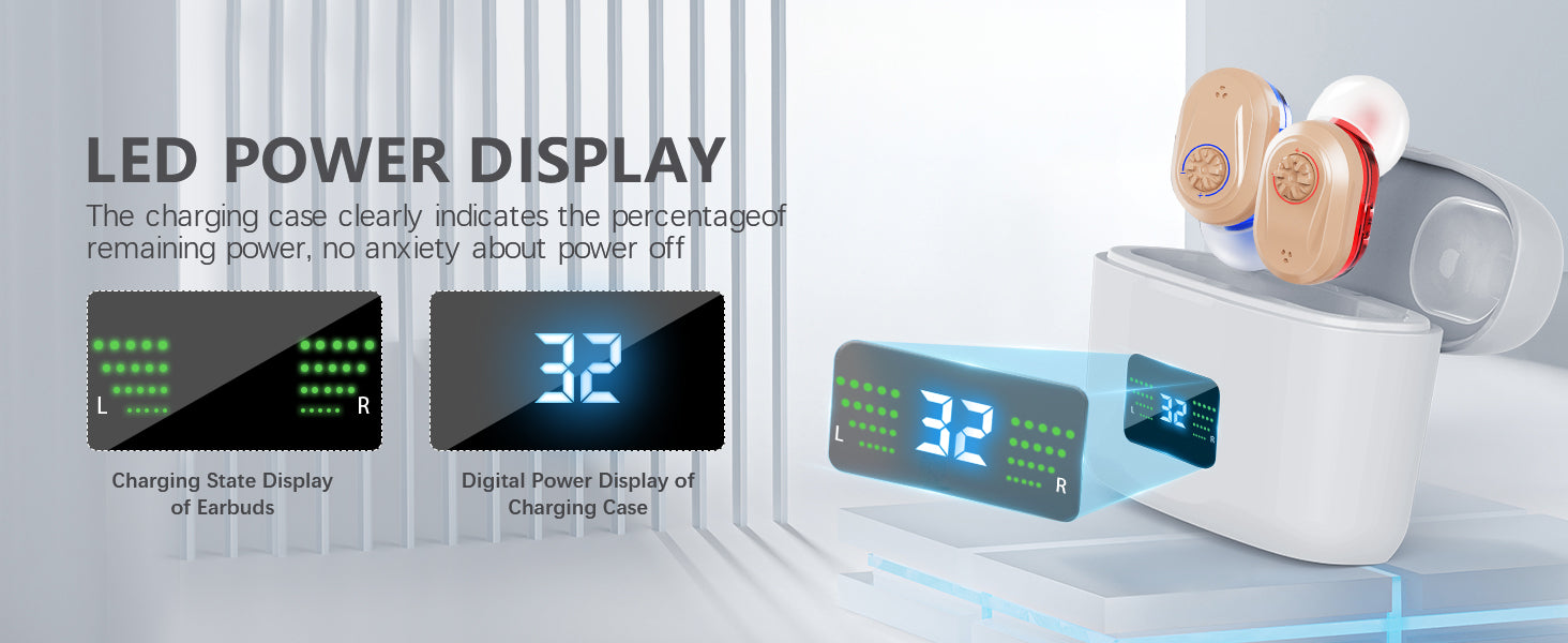 Wireless Mini Noise-cancelling Hearing Aid for Seniors, HD Digital Display, With Large-capacity Battery Charging Box