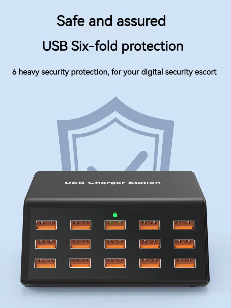 100W Desktop Universal USB Charger 15 Ports USB Fast Charging Station For Ipad Iphone16 15 14 13 Pro For Samsung EU Plug