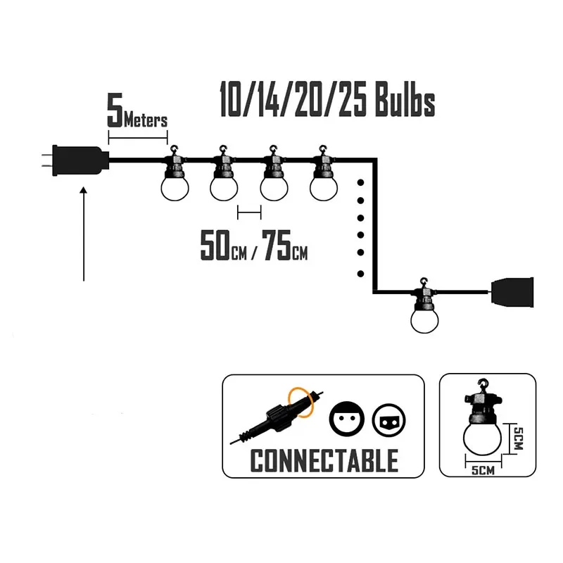 23M Patio String Light Bulbs G50 Milky Outdoor Camp Waterproof IP44 Lamp Christmas Garland Bulbs Garden Wedding Party LED Lights