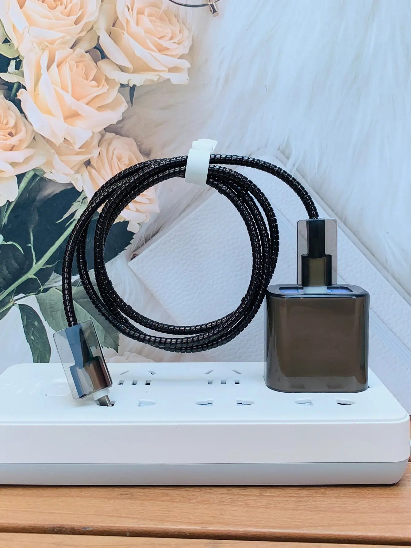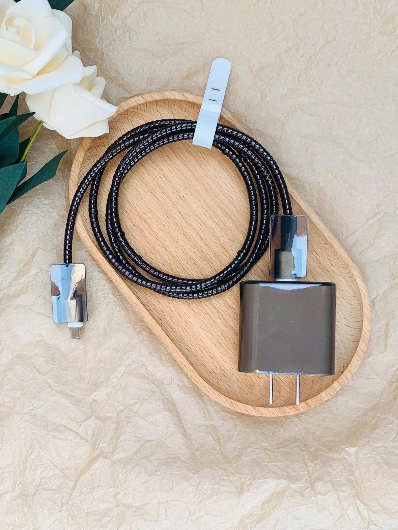 5pcs Black Protective Case Design TPU Wall Charger Protective Case For Apple Mobile Phone 20W Fast Charging Cable