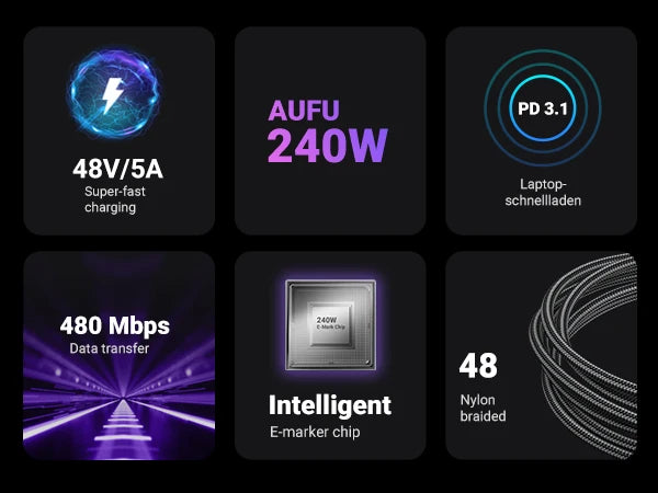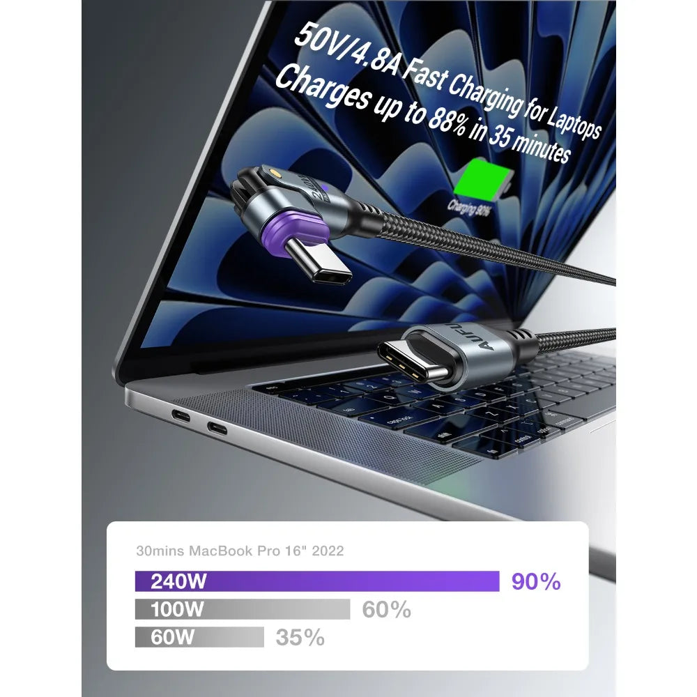 AUFU 16pin 180 Rotate Magnetic Cable 240W Fast Charging Micro USB Type C Cable For iPhone Xiaomi Samsung Magnet USB Phone Cable