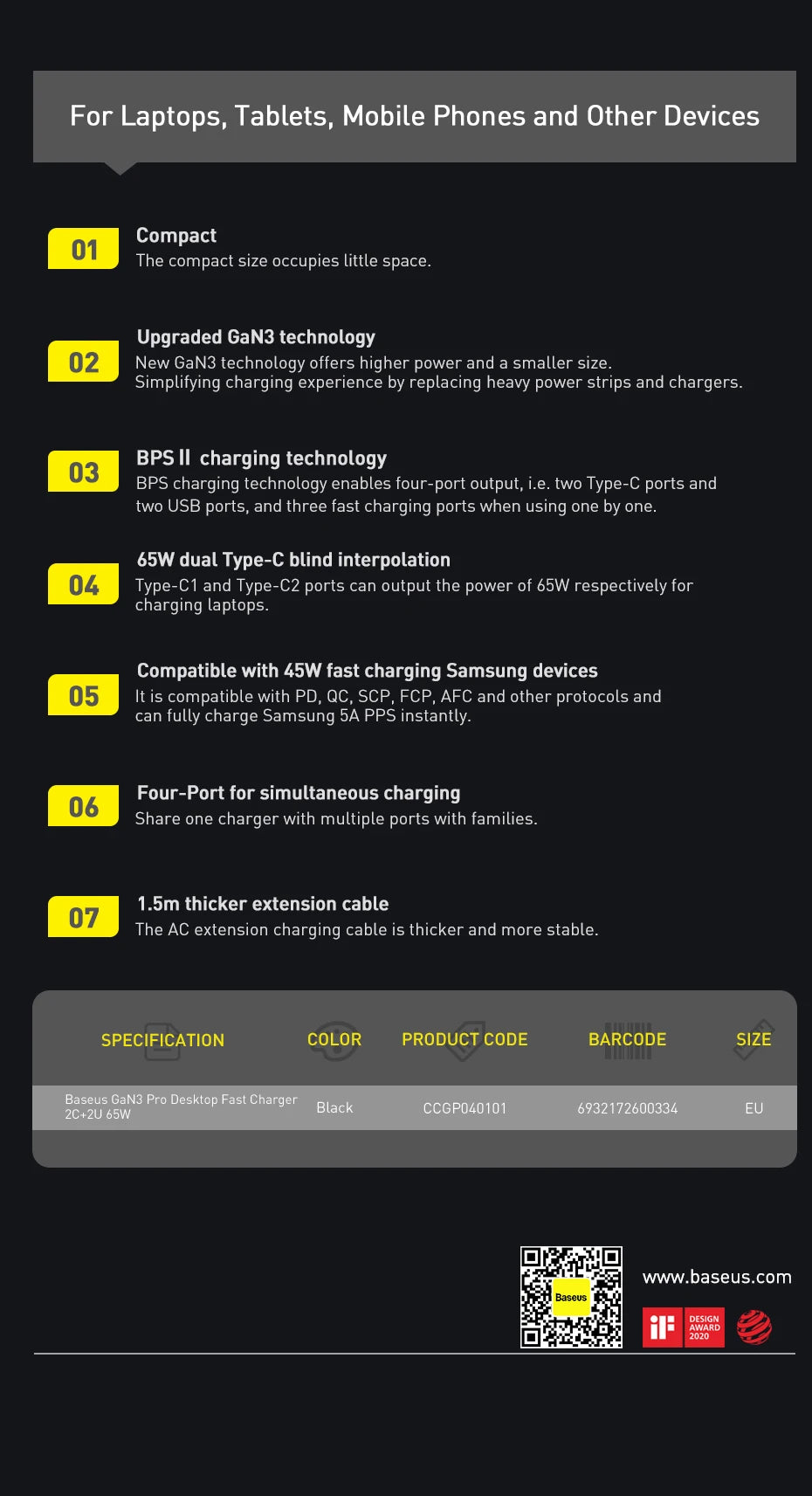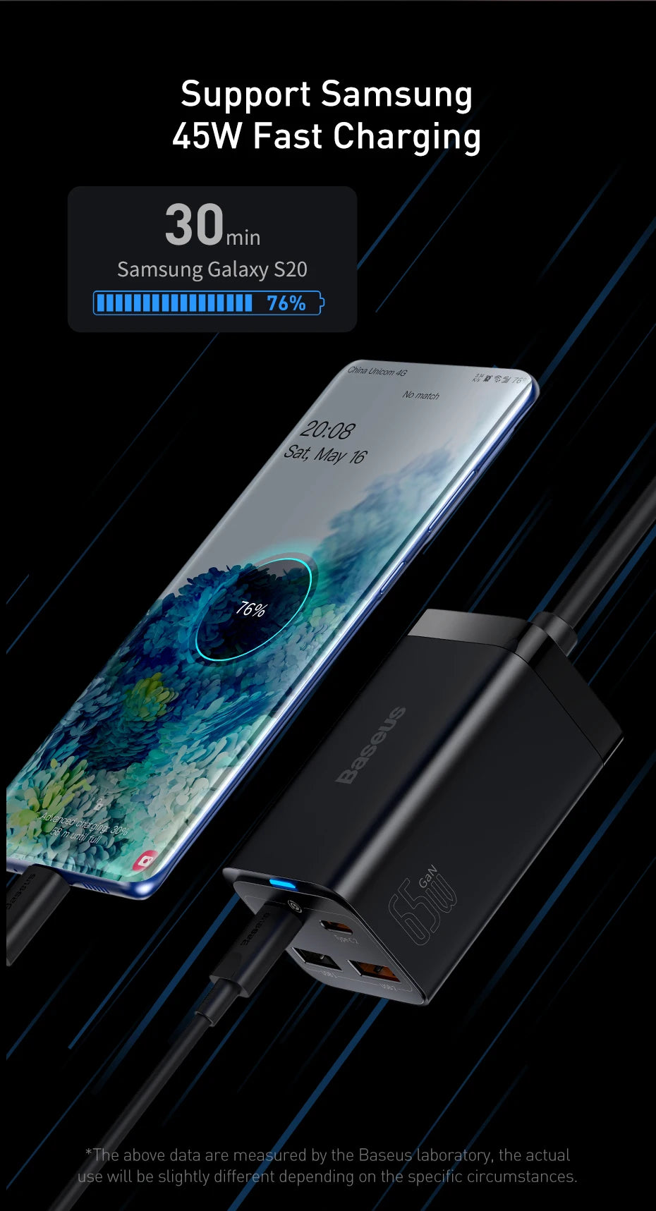 Baseus 65W GaN Charger Desktop Fast Charger 4 in 1 Laptop Phone Charger Adapter For iPhone 15 14 13 Pro Max Xiaomi Samsung
