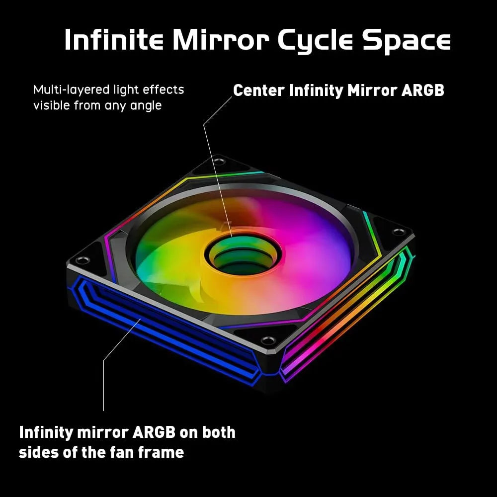 ICE Whale Prism 6PRO PC Case Fan 12cm 3-sided Infinite Mirror 5V 3PIN ARGB Motherboard Lighting Sync 4PIN PWM Silent Cooling Fan