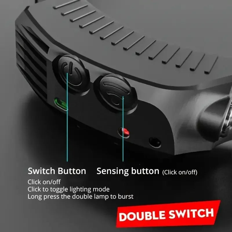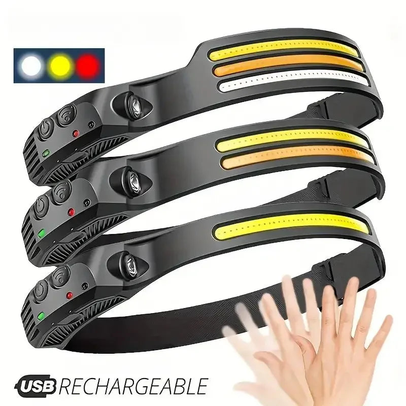 Multi-functional COB Headlamp Induction 6000K LED Bar Head Torch Work Light 5 Modes Rechargeable for Climbing Running Cycling