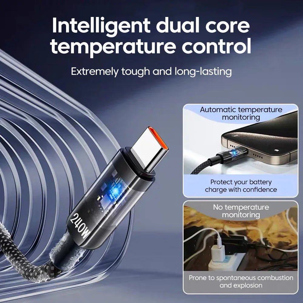 NNBILI USB C Quick Charging Cable 240W Nylon Braided Transparent Type C High-speed Charger Wire for Samsung Huawei Mi Data Line