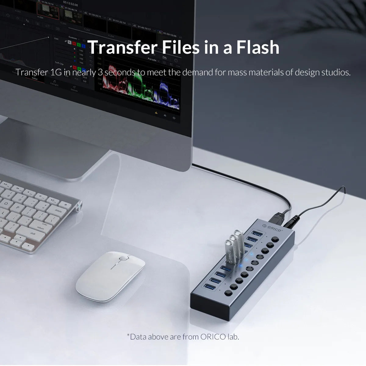 ORICO Powered USB Hub Splitter Socket with Multi USB 3.0 Port Slot Plug On-Off Key Switch Dock Power Strip Adapter for PC Lapto