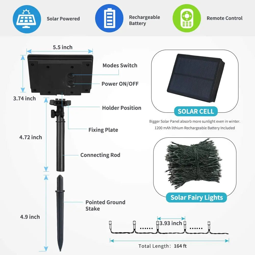 Solar Powered LED String Lights Outdoor Waterproof Fairy Lights String Solar Garland for Patio Wedding Christmas Garden Light
