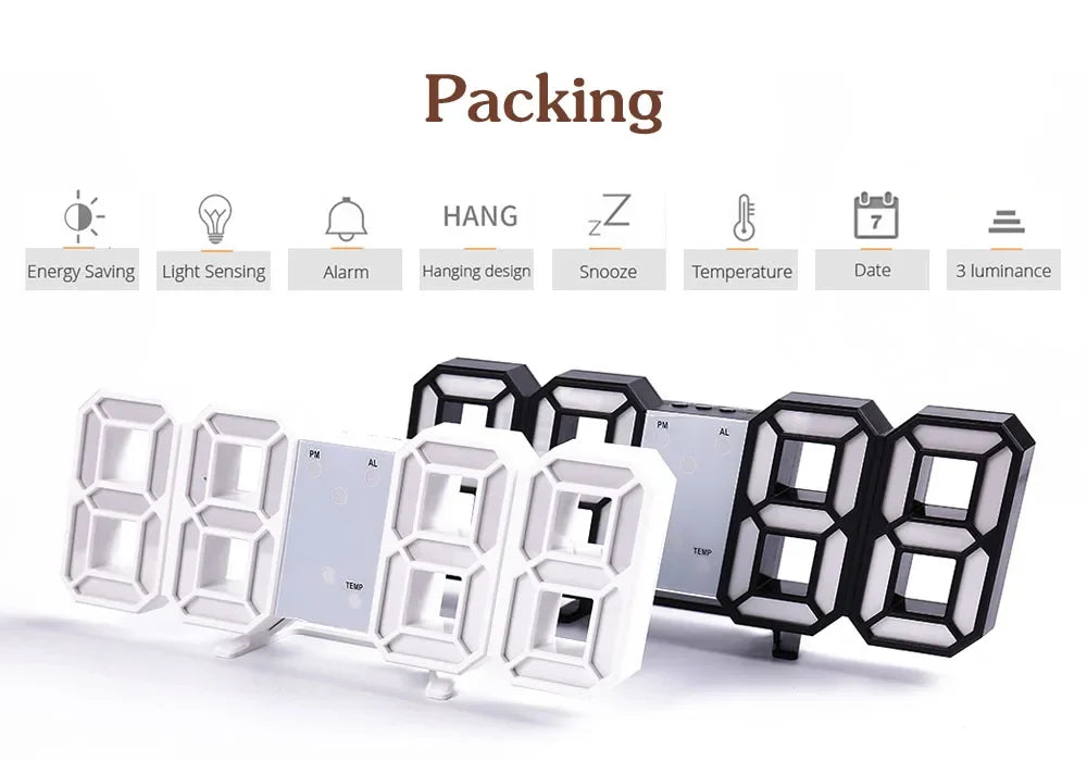 Table 3D LED Digital Alarm Clock Wall Clock Time/Date/Temperature for Home Kitchen Offices Clock Decoration Garden Clocks