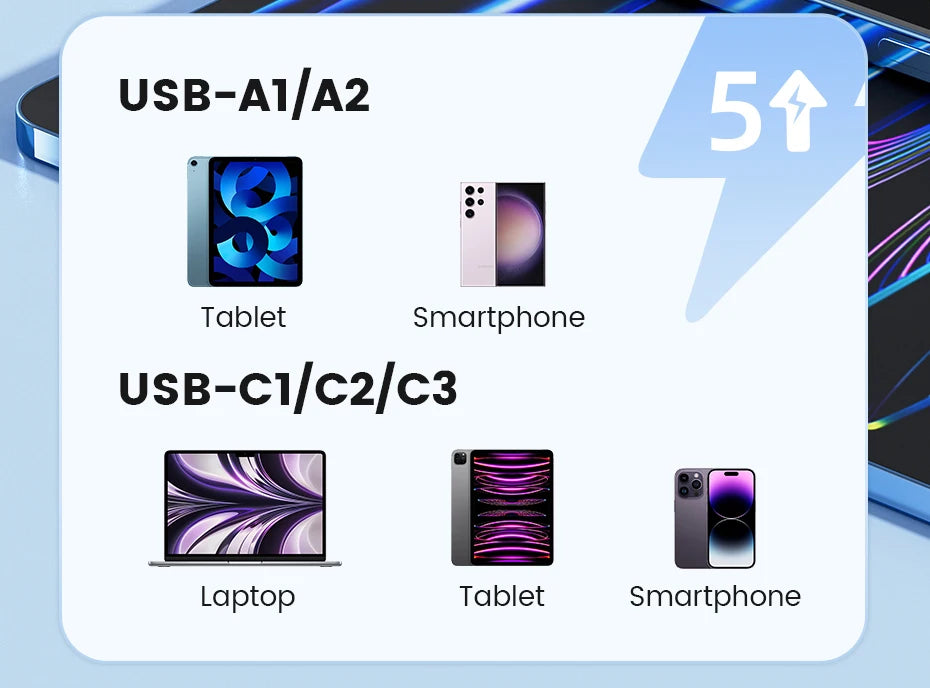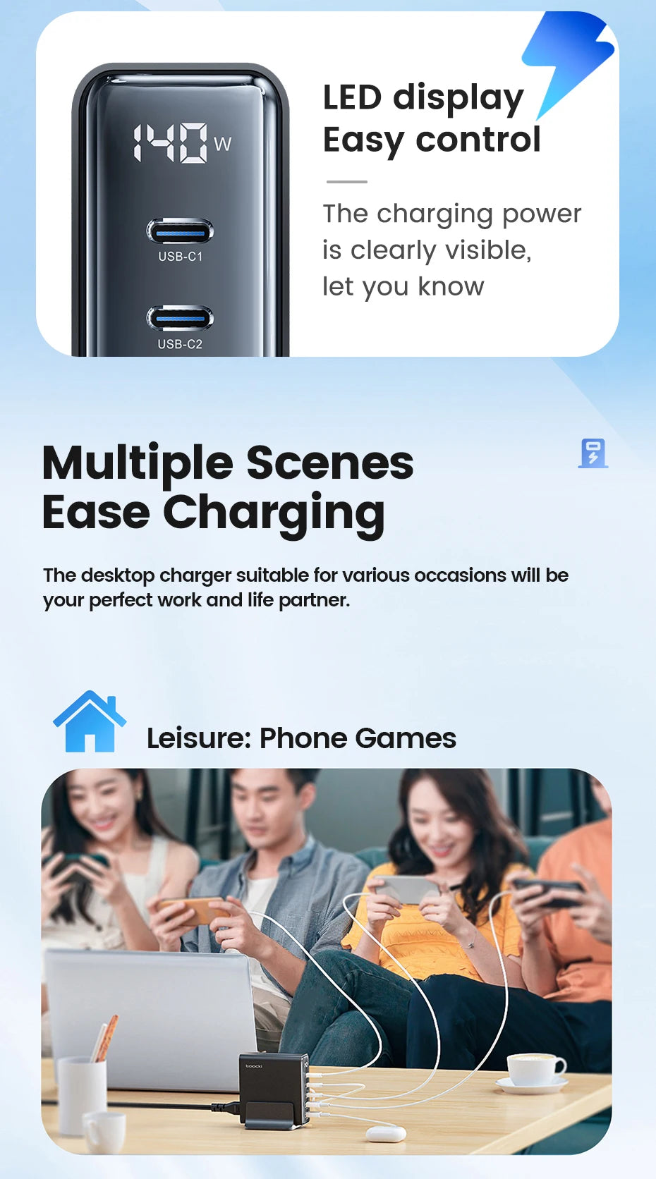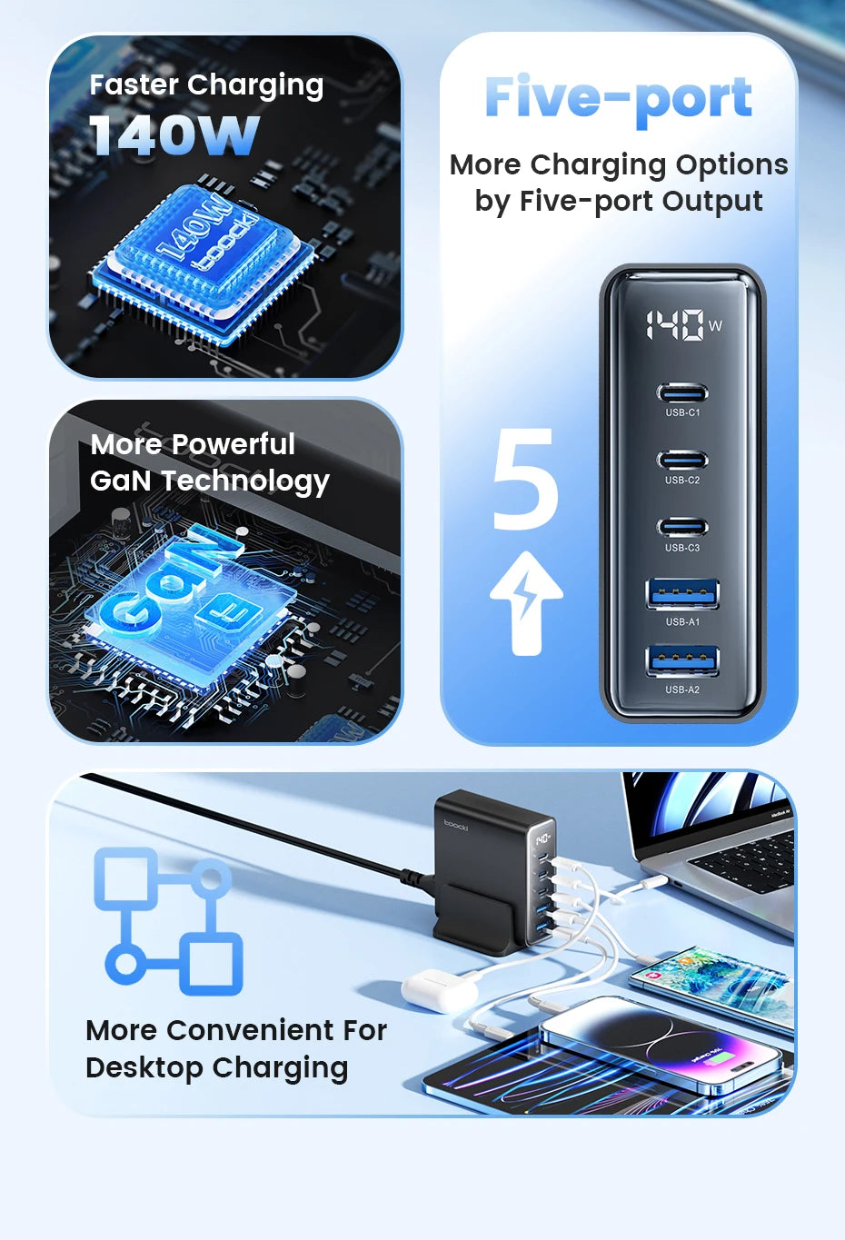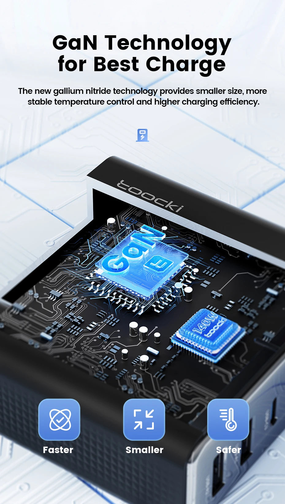 Toocki 140W GaN USB Charger 5in1 Desktop Fast Charge USB Type C Charger LED Display Charger For iPhone Xiaomi Smartphone Laptop