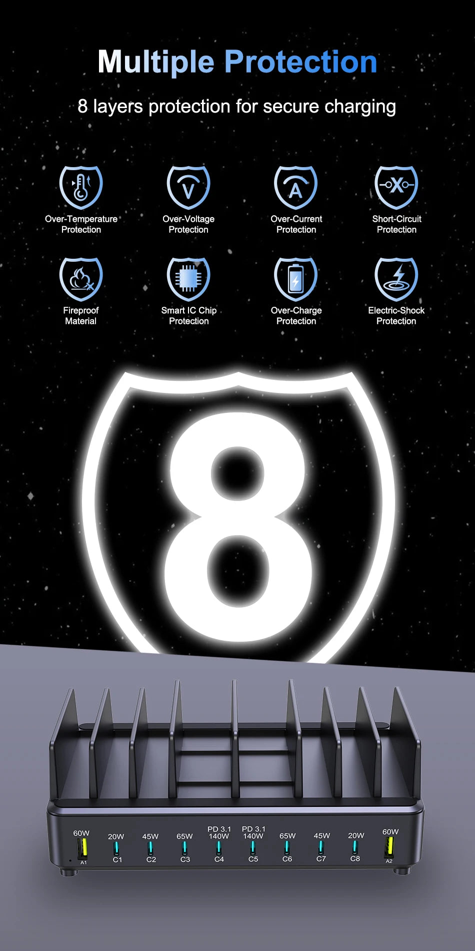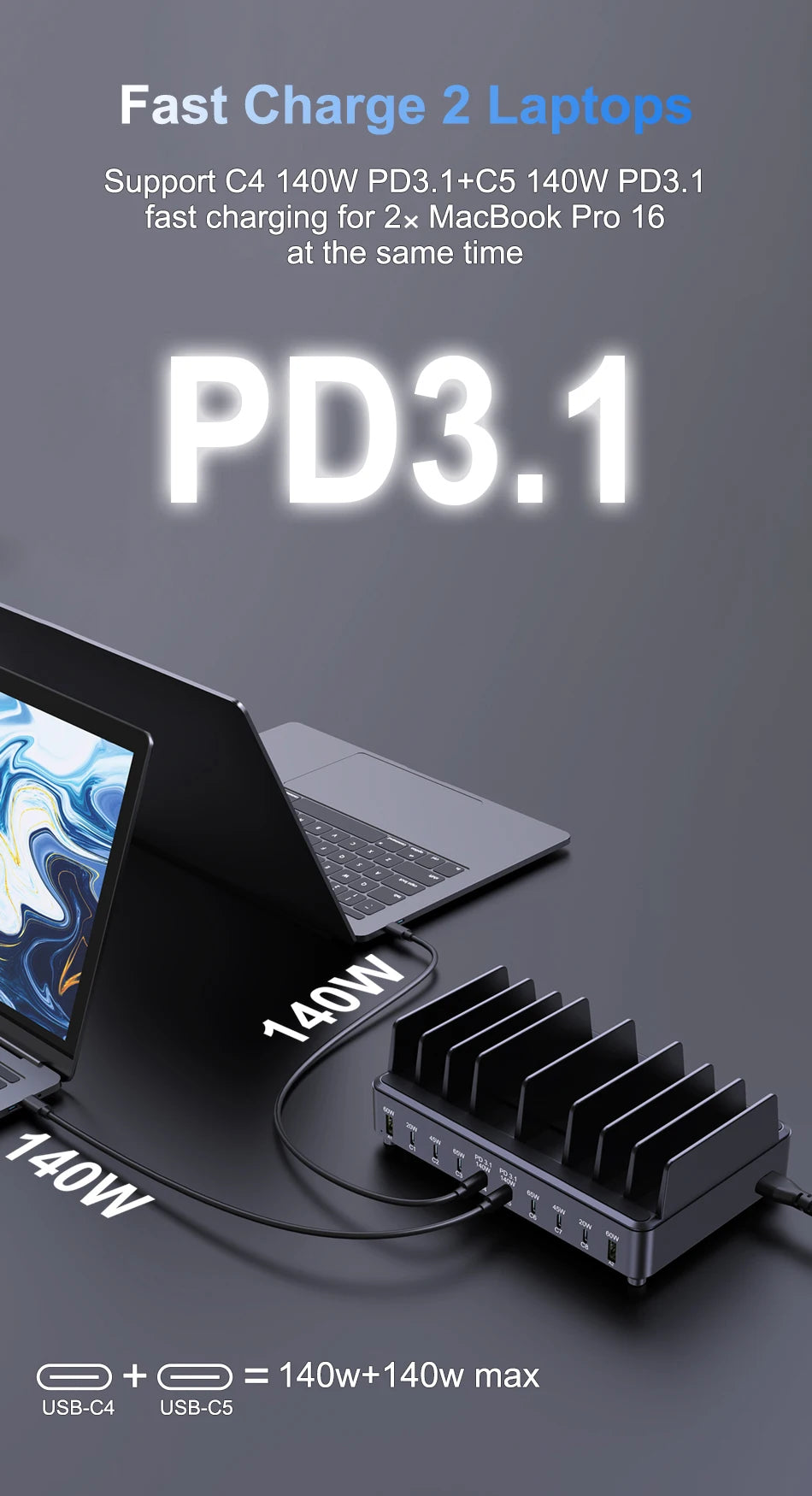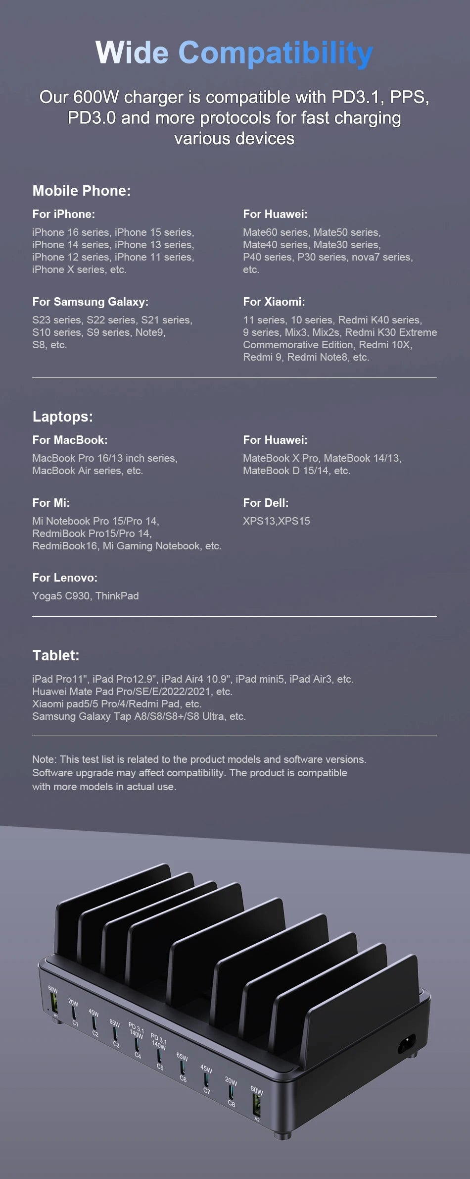 Ueetop 600W Multi USB Fast Charger 10-Port GaN PD 3.1 Charging Station Stand for MacBook iPhone 16 15 iPad Samsung Tablet Laptop