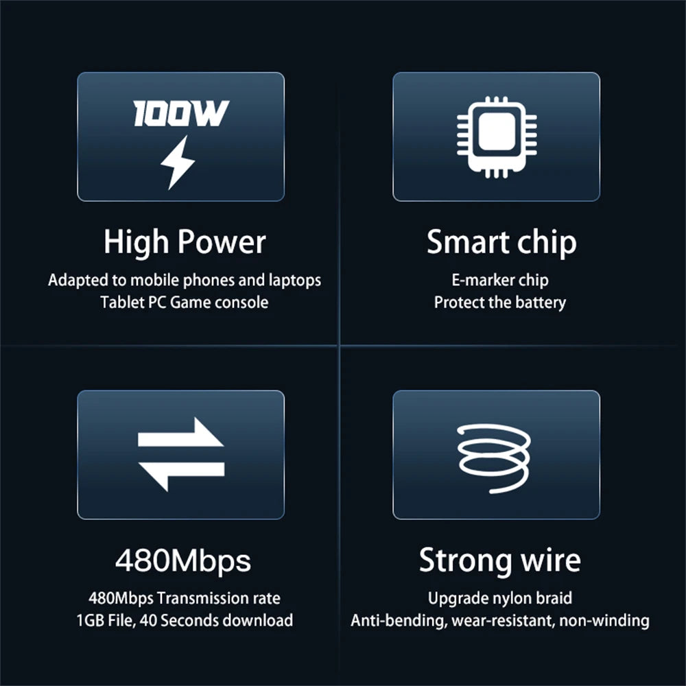 USB C to USB Type C Cable for MacBook Pro Quick Charge 4.0 PD 100W 5A Fast Charging for Samsung Xiaomi mi 10 Charge Cable 1/2M